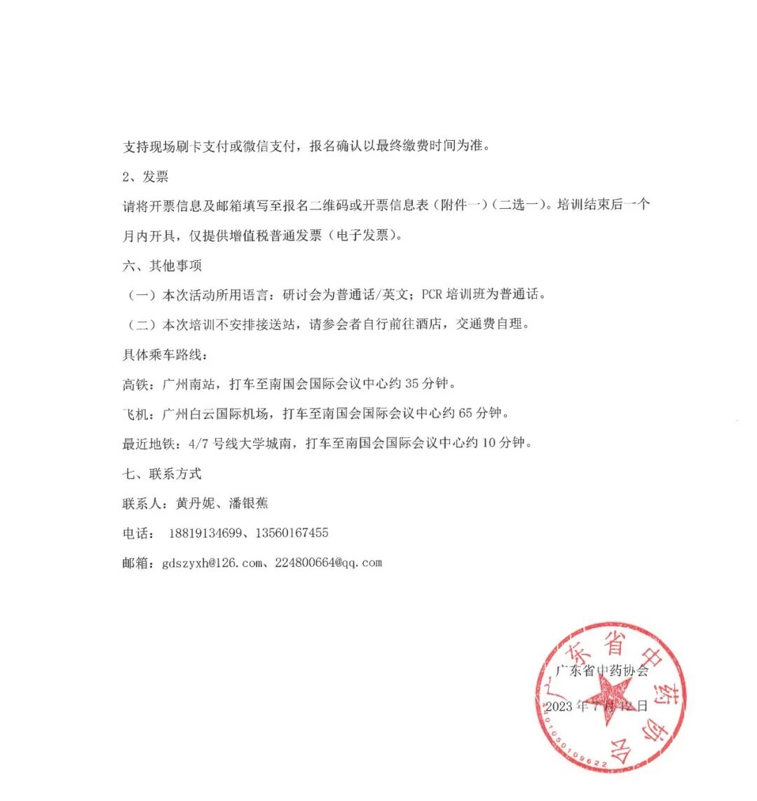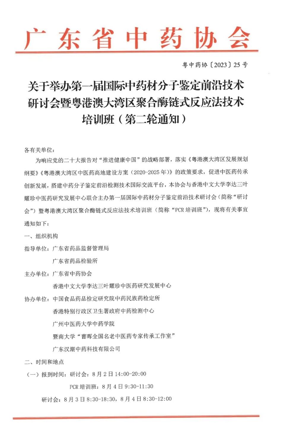 关于举办第一届国际中药材分子鉴定前沿技术研讨会暨粤港澳大湾区聚合酶链式反应法技术培训班(第二轮通知)