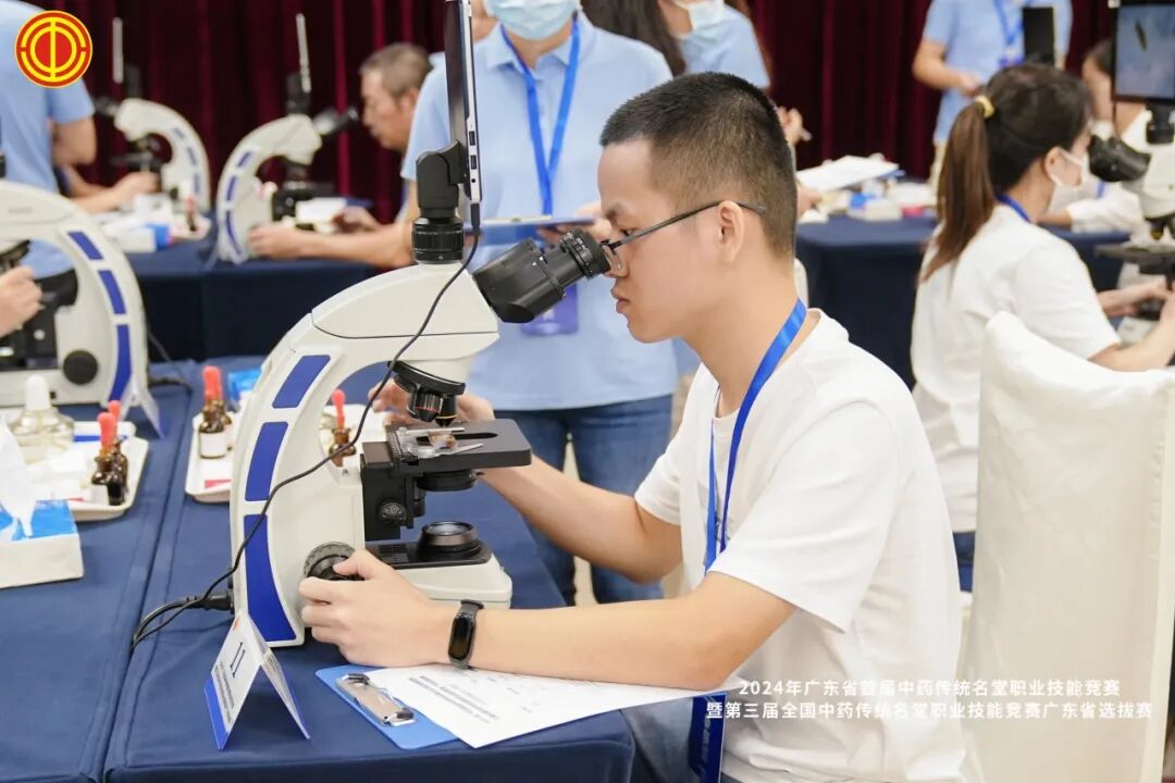本次竞赛由广东省总工会、省人社厅、省工信厅、省科技厅联合主办,省工业工会、广药集团工会共同承办,广东省中药协会、广东省中药协会中药材及饮片鉴定专业委员会、广东省药师协会、国家南药科技创新联盟、杰青光电科技(广州)有限公司(舜宇显微镜)合力协办,广州市总工会特别支持。竞赛设中药理论和实际操作两部分,成绩分别占比为30%、70%。测试选手相关法律法规、药品标准,中药鉴定、中药学、中药材炮制、显微鉴定等方面基本知识的掌握情况,以及快速准确的完成中药性状鉴定、真伪监别、显微鉴定等描述的技能。