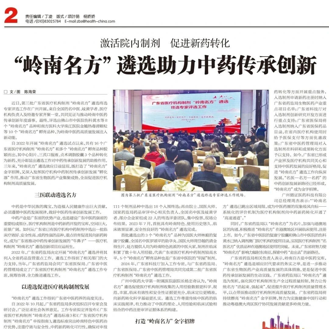 转发|中国医药报 : “岭南名方”激活院内制剂,助力中药传承创新