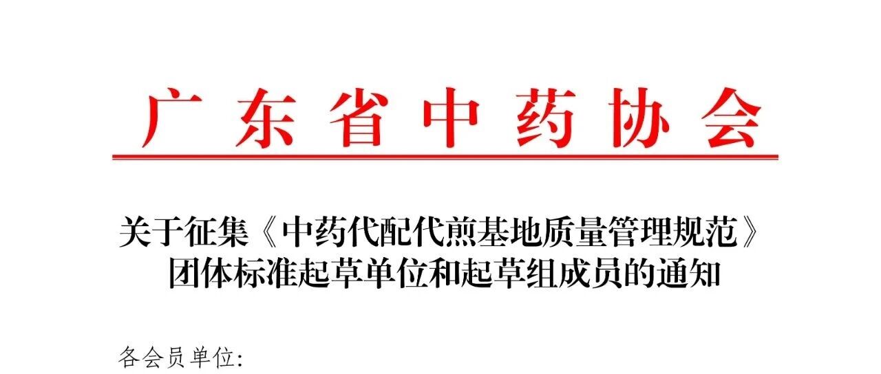 关于征集《中药代配代煎基地质量管理规范》团体标准起草单位和起草组成员的通知