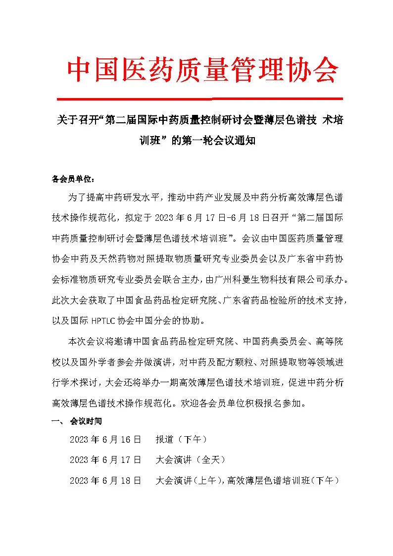 名称 | 第二届国际中药质量控制研讨会暨薄层色谱技术培训班 |