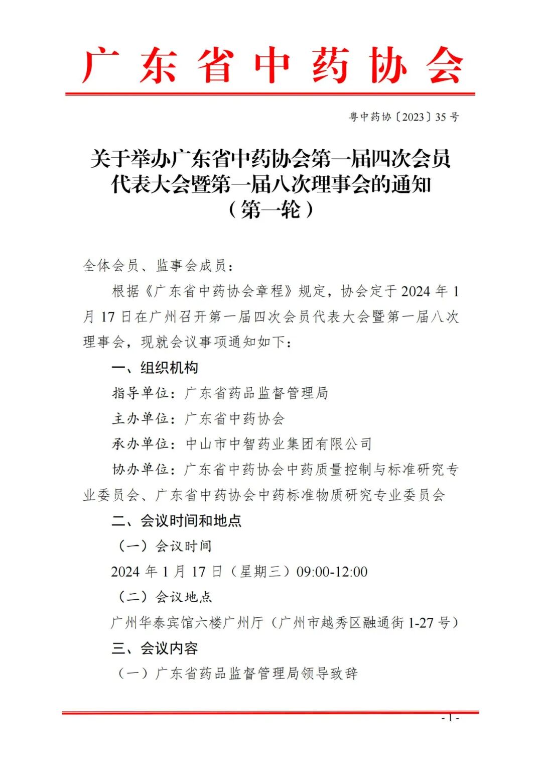 关于举办广东省中药协会第一届四次会员代表大会暨第一届八次理事会的通知(第一轮)