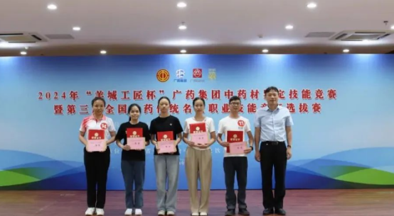 7月17日,由广药集团工会主办,广东省中药协会中药材及饮片鉴定专业委员会及采芝林药业工会联合承办的2024年“羊城工匠杯”广药集团中药材鉴定技能竞赛暨第三届全国中药传统名堂职业技能竞赛选拔赛在采芝林药业举行。广州市总工会一级调研员邢立明,经济工作与劳动保护部部长吴蕾,广药集团董事、工会主席李锦云,工会副主席简惠东,采芝林药业党委副书记、工会主席蔡志伟等相关领导专家出席竞赛现场,全集团14家单位共55名参赛选手同台竞技。“羊城工匠杯”广药集团中药材鉴定技能竞赛暨第三届全国中药传统名堂职业技能竞赛选拔赛合影2024年“羊城工匠杯”广药集团中药材鉴定技能竞赛现场 竞赛组委会聘请了全国名老中医药专家长周路山,广州中医药大学教授高明、黄海波作为专家组,对赛前试题和竞赛裁判等相关工作进行专业指导,为本次竞赛的顺利进行提供了强有力的专业与技术保障。周路山作动员发言专家组高明、黄海波教授竞赛前,由周路山作动员发言及宣读竞赛内容,他希望各位参赛选手全力以赴,认真对待每场考试。广东省中药协会中药材及饮片鉴定专业委员会秘书长、“大国工匠”黄小龙给参赛选手讲解竞赛注意事项。黄小龙(右一)讲解竞赛注意事项邢立明宣布竞赛开始,选手们井然有序地进入考场,迅速而准确地找到各自的竞赛位置。此次竞赛分理论知识竞赛和鉴定技能竞赛两大部分,分别进行中药性状鉴定,真伪鉴别、显微鉴定和药用功能描述。比赛现场,选手们全神贯注,各展所长。他们通过“眼看、手摸、鼻嗅、口尝”等传统鉴别方法以及显微鉴别,对各类中药材进行了细致的鉴别与分析。从中药材的外观形态到内在质量,从真伪辨别到产地溯源,每一环节都考验着选手们的专业功底与实战经验。参赛选手进行中药性状鉴别及中药真伪劣鉴别中药理论知识笔试现场参赛选手在中药显微鉴别环节比拼经过激烈的比拼,最终一批优秀选手脱颖而出,其中,黄倩茵荣获特等奖,黄明展等3人荣获一等奖,黄一萍等5人荣获二等奖,陈健聪等8人荣获三等奖。特等奖一等奖二等奖三等奖李锦云主席对获奖选手表示祝贺,向所有为竞赛成功举办付出辛勤劳动的评委、专家和采芝林药业工作人员表示感谢。她说,此次选拔赛不仅展现了广药集团的深厚底蕴和实力,更是检验企业对职工技能水平的提升和人才素质培养的重要平台。选手们通过激烈竞技,相互学习交流,展示了优秀技能和独特风采,促进中药事业的传承与创新。本次竞赛较好地体现了三个结合,即“将职工技能竞赛与工会引领职工建功新时代有机结合;与集团产业工人队伍建设改革有机结合;与弘扬中药传统文化有机结合”。广药集团将继续推进这一品牌竞赛,培养更多技术型、知识型和创新型职工,为中药产业的高质量发展贡献广药力量。李锦云作总结发言一直以来,采芝林药业不断推动产业人才队伍创新建设,积极培育优秀的中药材技能人才,目前已培育出“大国工匠”1位。近三年,采芝林药业选拔精英骨干组队参加全国中药传统名堂职业技能竞赛,荣获第一届一等奖、第二届一、二、三等奖的好成绩;参加广东省及省外各类中药技能鉴评竞赛,皆取得优异成绩。采芝林药业获奖选手合影接下来,采芝林药业将以此次竞赛为契机,进一步打造新质生产力,加快建设采芝林“数字中药”,巩固学习中药技能鉴定专业知识的成果,提升相关岗位职工的中药专业水平,打造高素质中药专业人才库,助力中药产业高质量发展。文章转载自微信公众号:广东省中药协会
