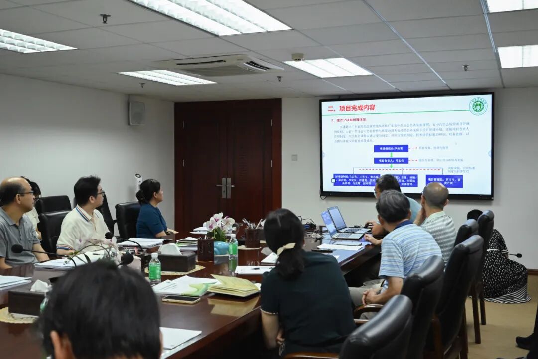 省局行政许可处一级调研员赖育健、二级主任科员黄志宏、黄国凯,专家组成员深圳市宝安纯中医治疗医院主任中药师梅全喜、广东省药品检验所主任中药师林锦锋、广东省中医药科学院研究员丘小惠、广东药科大学教授孟江、财务专家况琳,协会会长李泳雪、秘书长黄志海、协会中药饮片专委会主任委员曹晖、协会中药材种植与质量追溯专业委员会主任委员马宏亮及项目组成员等参加验收会议。验收会议由省局行政许可处一级调研员赖育健主持。