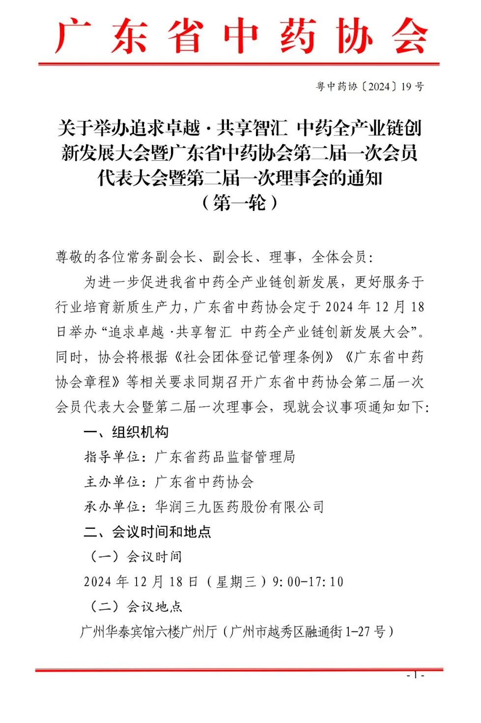 为进一步促进我省中药全产业链创新发展,更好服务于行业培育新质生产力,广东省中药协会定于2024年12月18日举办“追求卓越·共享智汇 中药全产业链创新发展大会”。同时,协会将根据《社会团体登记管理条例》《广东省中药协会章程》等相关要求同期召开广东省中药协会第二届一次会员代表大会暨第二届一次理事会,现就会议事项通知如下: