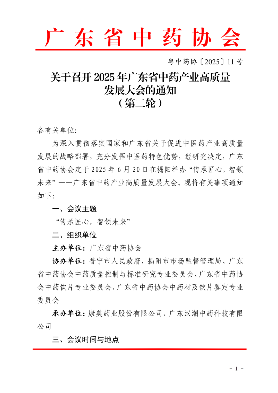 关于召开2025年广东省中药产业高质量发展大会的通知(第二轮)
