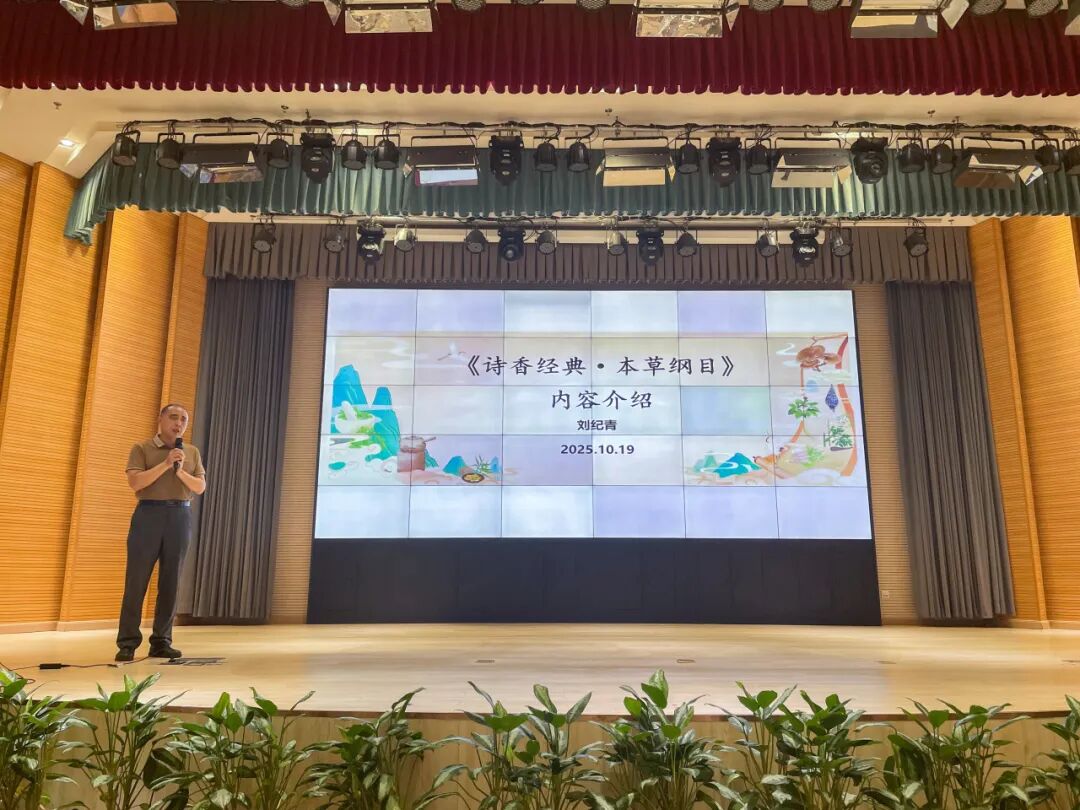 刘纪青主任委员分享了《〈诗香经典·本草纲目〉内容介绍》,创新性地以诗歌形式解读《本草纲目》中的药物及相关内容,展现了中医药与中华优秀传统文化深度融合的魅力。