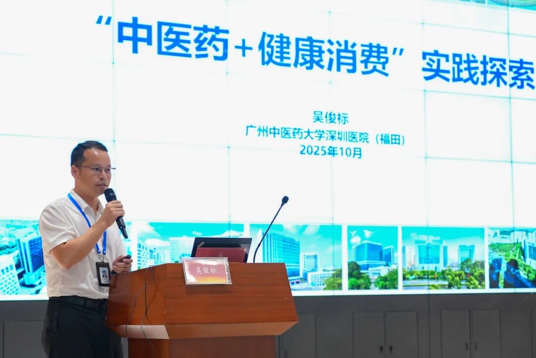 广州中医药大学深圳医院吴俊标教授分享了《“中医药+健康消费”实践探索》,报告结合医院在中医药健康产品研发、跨境医疗服务、文旅融合等方面的实践,展示了中医药消费的巨大潜力与创新模式。