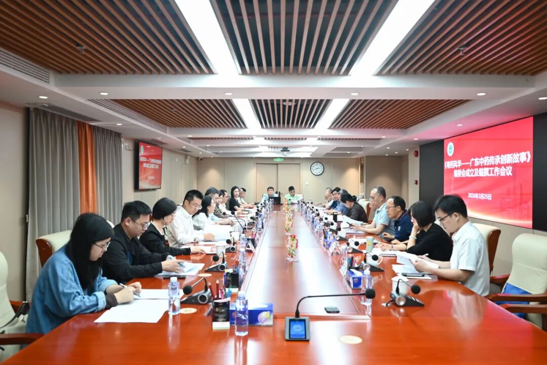 2026年3月25日下午,《粤药风华——广东中药传承创新故事》(以下简称《粤药风华》)编委会成立暨编撰工作会议在广州顺利召开。会议特邀广东省药监局行政许可处领导,广东省药监局原副局长严振、《中药材》杂志社社长元四辉、暨南大学教授吴孟华专家莅临指导,广东省中药协会会长李泳雪、执行秘书长许铮弟,协会常务副会长代表孙冬梅、黄丽玲及各专业委员会主任委员等参加会议。会议由许铮弟主持。