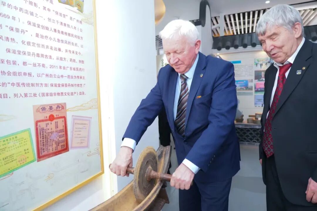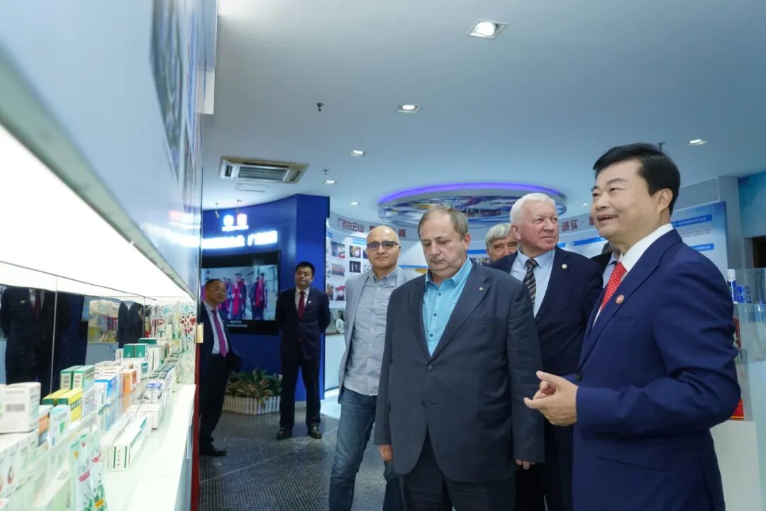 当天,图波列夫·瓦列里·斯坦尼斯拉维奇一行还前往广药集团企业文化展厅参观,深入了解了广药集团的中医药文化历史底蕴,以及在时尚中药科普化、现代化、大众化、国际化、产业化、时尚化等方面取得的成果。作为全球首家以中医药为主业进入世界500强的企业,广药集团已经连续三年上榜《财富》世界500强,2023年名列第426位,较2022年上升41位,同时也是唯一入选制药分行业榜单的中国企业,位居第12位。广药集团旗下拥有“白云山”和“康美药业”2家上市公司和12家中华老字号,正在加速打造成为大南药、大健康、大商业、大医疗四大板块蓬勃发展的世界一流医药健康综合性大集团。