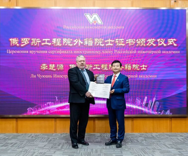 今年6月,李楚源当选俄罗斯工程院外籍院士。会上,俄罗斯工程院院士、代表团团长斯克里波奇卡·奥列格·伊万诺维奇主持证书颁发仪式,图波列夫·瓦列里·斯坦尼斯拉维奇为李楚源颁发了外籍院士证书,标志着李楚源在生物医药健康领域取得的成就得到了俄罗斯学术界的高度认可。