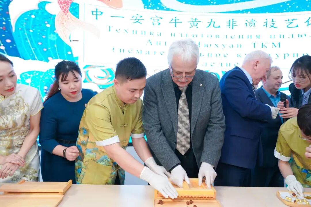 图波列夫·瓦列里·斯坦尼斯拉维奇一行体验白云山中一安宫牛黄丸非遗制作技艺